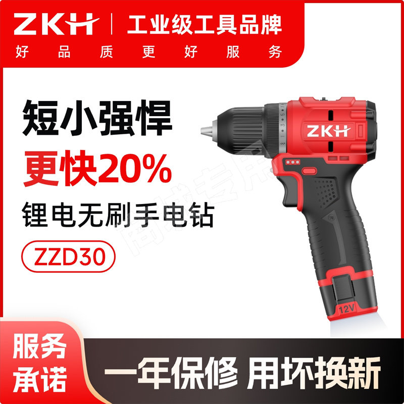 ZKH/震坤行 12V锂电无刷手电钻 ZZD30 12V 30N·m 含2.0Ah两电一充 1台