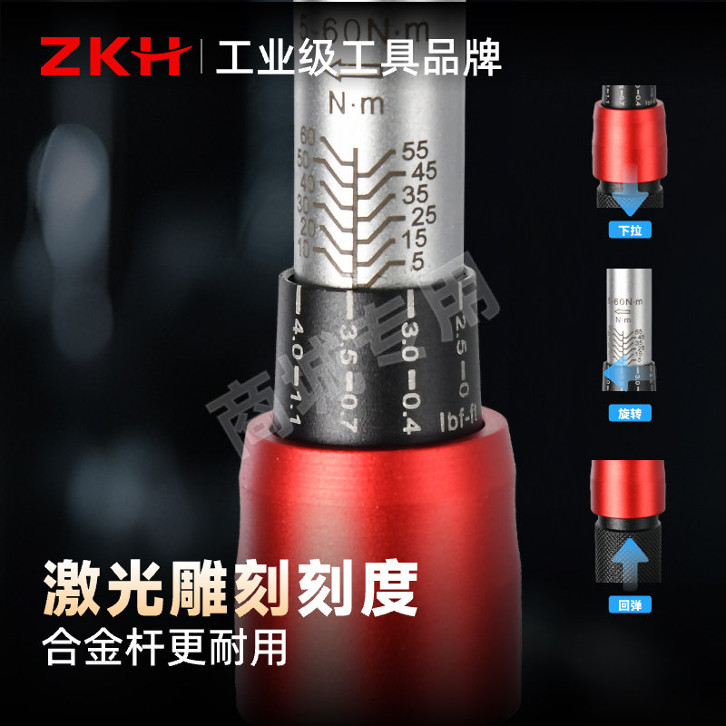 现货ZKH/震坤行 专业级棘轮头可调扭力扳手 HHT-TW005025 1/4" 5-25N·m 3%精度 1把