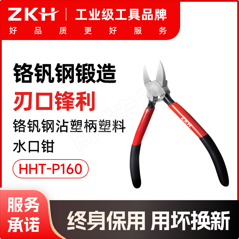 ZKH/震坤行 铬钒钢沾塑柄塑料水口钳 HHT-P160 6"/150mm 1把