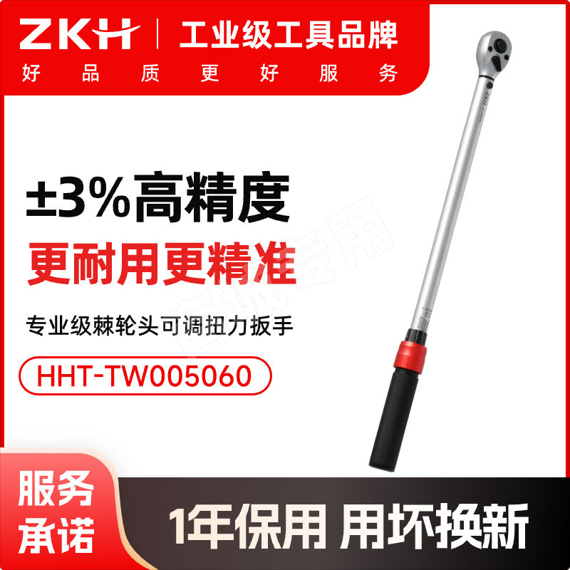 ZKH/震坤行 专业级棘轮头可调扭力扳手 HHT-TW005060 3/8" 5-60N·m 3%精度 1把